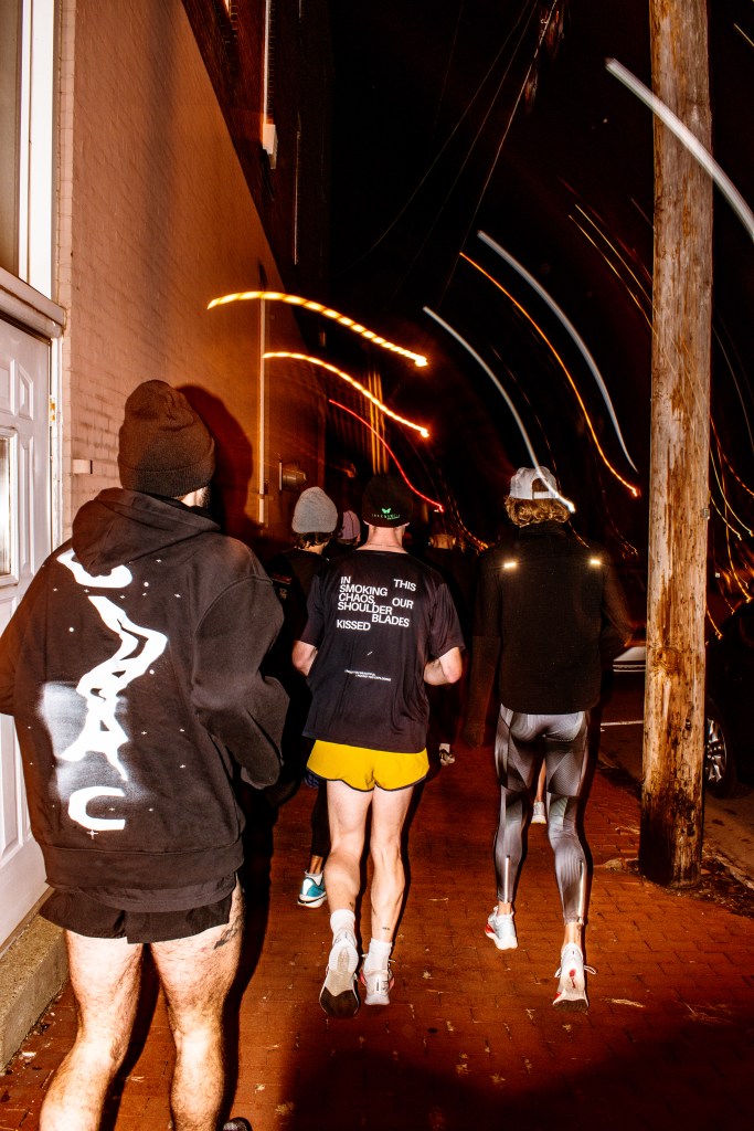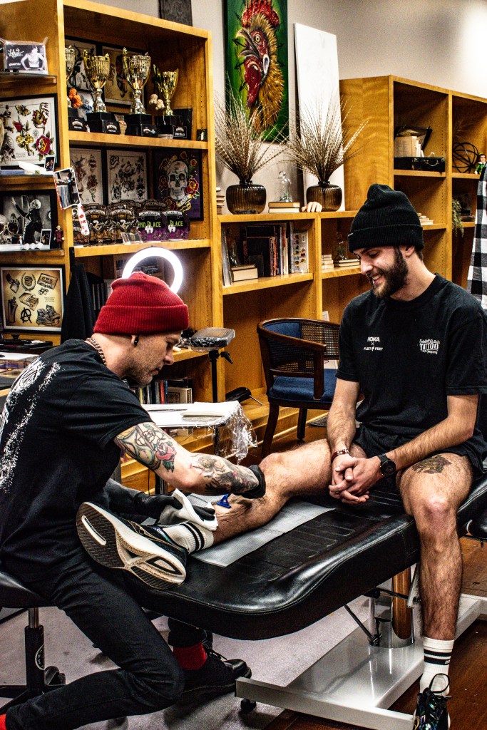 The course was a half mile. A dash from the start line in the alley on the side of the Fleet Feet building, looping around the block and finishing at the front door of the tattoo studio. Embellish artists designed the flash sheet with runners inspiration. 35 participants for the race with 25 choosing to get tattoos that evening. A new event type of combining tattoo artistry and running to compete for a chance to get theirs for free.